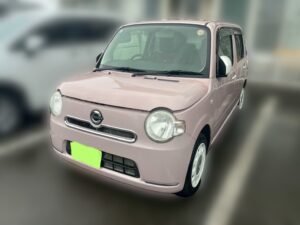 敦賀市でダイハツ「ミラココア」の買取査定をご依頼いただきました。女性人気が高いかわいいデザインとピンクカラーが魅力の軽自動車です。